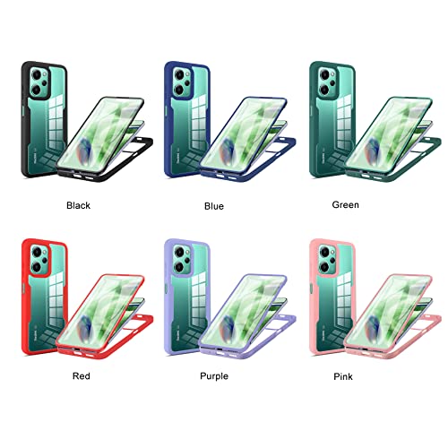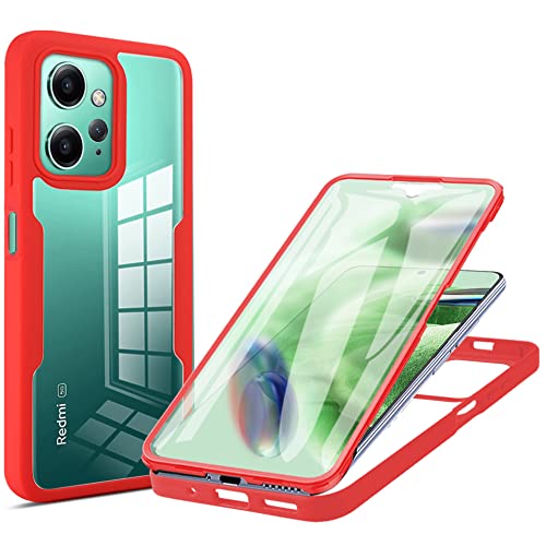 BOKYAS Custodia Trasparente per Xiaomi Redmi Note 12 4G con Protezione per Display Integrata, Dual Layer Ibrida 360° Full Body Antiurto Protettiva Cover, Rosso