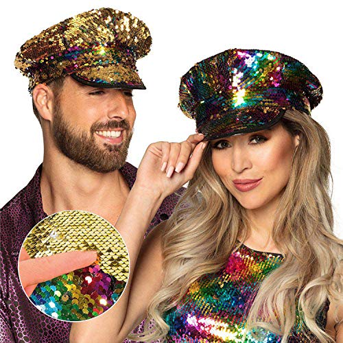 Boland 44736 - Berretto arcobaleno con paillettes reversibili, per adulti, lucido, carnevale, carnevale, carnevale, Halloween, feste a tema, discoteca