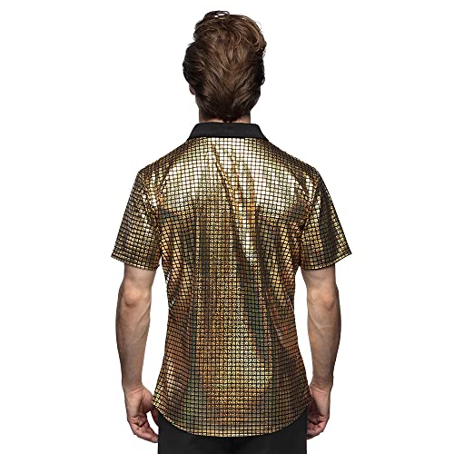 Boland - Camicia Disco, Oro, Camicia Disco Diamond, Camicia da uomo a manica corta, Camicia da uomo, Top, Camicia da festa per Carnevale o feste con motto