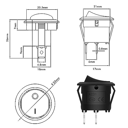 Bolatus 10 interruttori a bilanciere rotondi, ON/OFF a levetta con autobloccante, 10 A/125 V 6 A/250 V, per auto, barca, elettrodomestici, nero