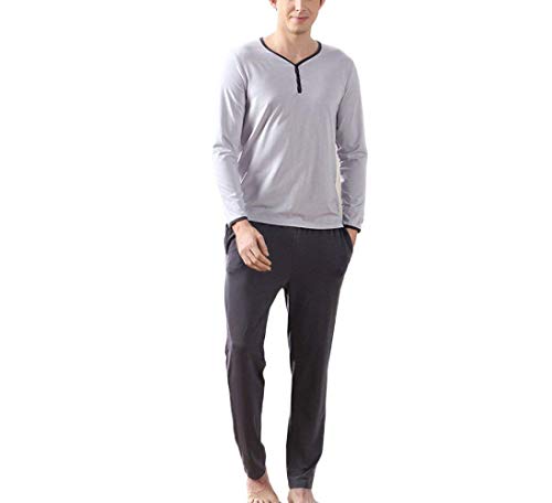 BOLAWOO Pigiama da Uomo in Cotone Maniche Casual A Pigiama Lunghe Set Loungewear Mode di Marca Pigiama Classico Leggero Pigiama Classico Set Due Pezzi (Color: Grey, Size: M)
