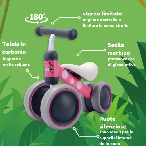 BOLDCUBE Biciclette Senza Pedali per Bambini da 10 a 24 mesi 1 - 2 anni design animali e Confezione Regalo (Bonnie Il Coniglietto)