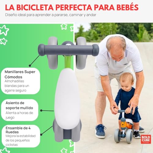 BOLDCUBE Biciclette Senza Pedali per Bambini da 6 a 18 mesi 1 - 2 anni design animali e Confezione Regalo (Verde Rana)