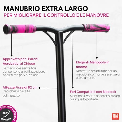 BOLDCUBE Monopattino acrobatico per bambini dagli 8 ai 12 anni - Pro Freestyle Trick Scooter per ragazzi, ragazze, adolescenti e adulti, monopattino acrobatico per ragazzi 11-15 anni ABEC 9 ruote, a