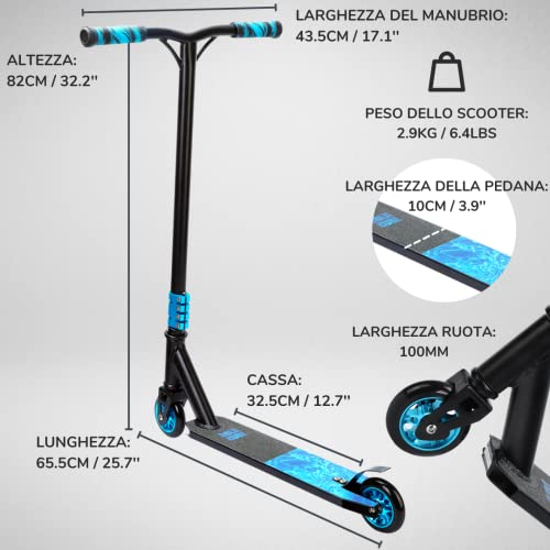 Montaggio senza sforzo: il tuo assemblaggio per scooter acrobatico è un processo in 2 fasi, unendo il gambo e la tavola e stringendo quattro bulloni sul morsetto con le chiavi a brugola in omaggio fornite. Composto e pronto per guidare subito fuori dalla scatola. Con l'assistenza clienti con sede nel Regno Unito, nell'UE e negli Stati Uniti ogni volta che hai bisogno di noi, siamo qui!