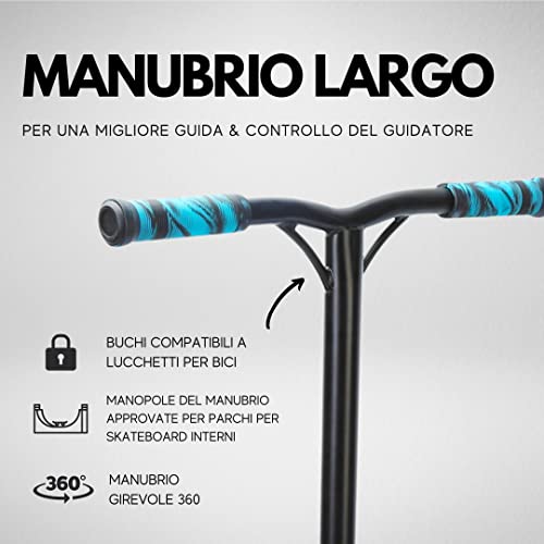 Ruote in lega ABEC9: per la rotazione delle ruote più fluida, lo scooter Deluxe Stunt è dotato di cuscinetti ABEC-9, la massima precisione che puoi ottenere per la rotazione più veloce e fluida