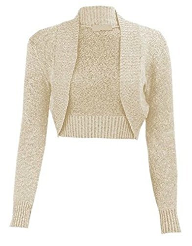 M98, bolero corto da donna a maniche lunghe, in lurex effetto metallizzato, lavorato a maglia, adatto come coprispalle per serate di gala o matrimoni Stone XL (52-54)