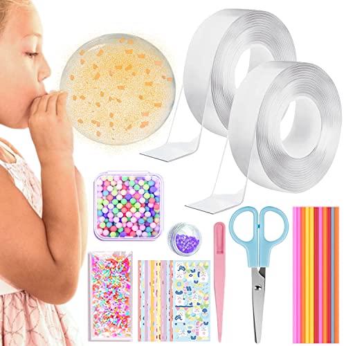 Set di 31 bolle nano-nastro, bolla nastro, bolla nastro, nastro bolla nano, nastro trasparente multiuso per poster, kit fai da te, giocattolo di decompressione con glitter e paglia.