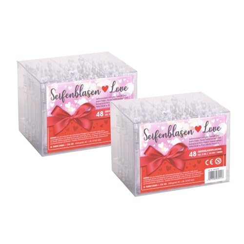 WOMA Set di bolle di sapone per matrimonio, 48 pezzi, con bastoncini e liquidi, bolle di sapone Love Edition, in confezione regalo, bolle di sapone da sposa con manico a forma di cuore, set di bolle