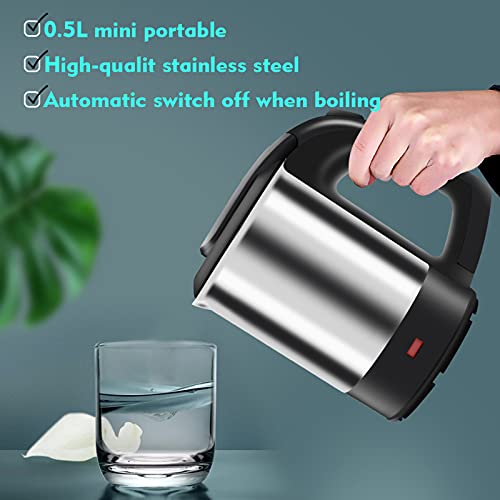 Bollitore Acqua Elettrico, 500ML, 1000 Watt, Bollitore Elettrico in Acciaio Inox, Spegnimento Automatico, Protezione a Boil-Dry, Ebollizione Rapida, Bollitore Compatto da Viaggio
