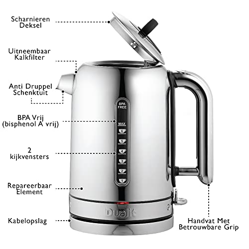 · ELEMENTI SOSTITUIBILI: Questo scalda acqua elettrico classico Dualit è costruito veramente per durare. Dotato di rivoluzionari elementi sostituibili brevettati.*