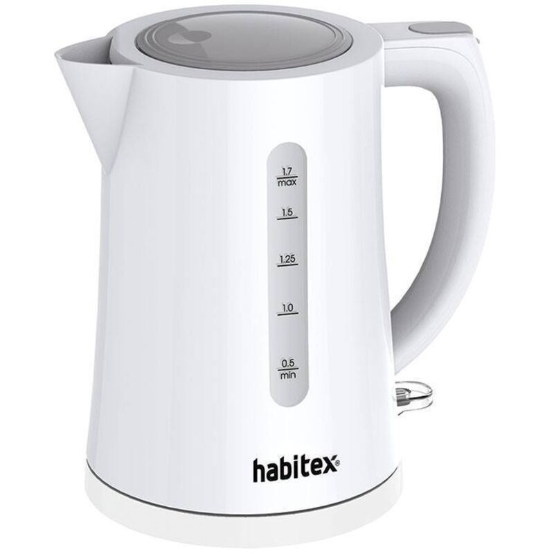 Corpo in plastica ABS bianca. Apertura automatica del coperchio. Base di posizione libera a 360°. Indicatore del livello dell'acqua. Collettore di potenza: 2.200 W. Capacità serbatoio: 1,7 litri.
