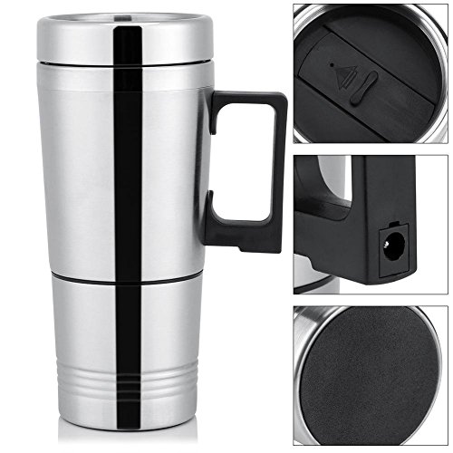 Bollitore elettrico per acqua calda EVTSCAN, 12v/24v 300ml portatile in acciaio inossidabile per auto, macchina per il caffè, riscaldamento, tazza per bere(24V)
