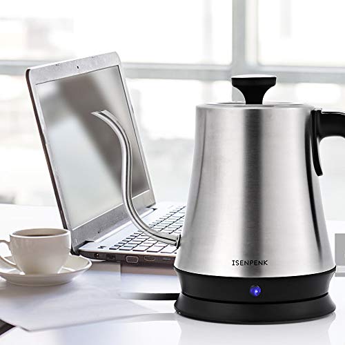 1L Bollitore Elettrico, ISENPENK Bollitore con Beccuccio di Collo di Cigno di Tipo S in Acciaio Inox con Termometro, Bollitore con Isolamento Termico Bollitore da Acqua per Caffè e Tè, Autospegnimento