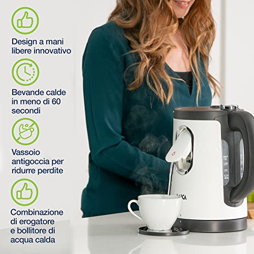 DESIGN ORIGINALE E UNICO: DualFlo è il primo e unico bollitore combinato e distributore di acqua calda sul mercato. A differenza di altri bollitori, l'innovativo dispenser da una tazza offre una soluzione a mani libere per preparare una bevanda calda.