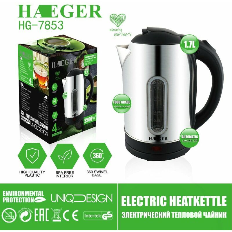 POTENTE SISTEMA DI EBOLLIZIONE RAPIDA: Questo bollitore elettrico da 1,7 litri fa bollire l'acqua più velocemente di un microonde e più sicuro rispetto all'utilizzo di un bollitore, perfetto per dormitori, uffici o cucine di qualsiasi dimensione. Questo bollitore per l'acqua calda è senza fili per un facile servizio e il riscaldamento è comodo e sicuro con un elemento riscaldante nascosto. BECCUCCIO ANTIGOCCIA: Tieni le mani al sicuro dall'acqua calda mentre versi con il beccuccio antigoccia di questo bollitore elettrico. FINESTRA DEL LIVELLO DELL'ACQUA: La finestra del livello dell'acqua di facile visualizzazione ti consente di misurare la quantità perfetta ogni volta nel tuo bollitore elettrico. COPERCHIO A PULSANTE: Il bollitore elettrico ha un semplice coperchio a pulsante per evitare fuoriuscite.