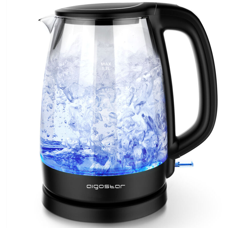 Protezione contro l'ebollizione a secco Capacità 1,7 L La base può essere ruotata di 360 gradi e staccata/rimovibile Colore del prodotto Nero Dimensioni L220*L159,5* H244mm Lunghezza lunghezza cavo0,75 mTipo di spinaVDEMaterialeVetro e plasticaMateriale internoVetro e acciaio inossidabileCertificatiCE, RoHSPeso1.075kgQuantità nella confezione1. pezzi/scatola coloreQuantità nella confezione esterna6. pezzi/scatola Presentiamo un elegante bollitore elettrico in vetro della Aigostar, modello "Adam". Questo moderno bollitore ha una potenza compresa tra 1850 e 2200W e funziona ad una tensione di 220-240V ad una frequenza di 50/60Hz. Ha una capacità di 1,7 litri ed è realizzato con materiali per uso alimentare, che garantiscono la sicurezza d'uso. Il bollitore è dotato di sistema di protezione contro l'avviamento senza acqua e la base può essere