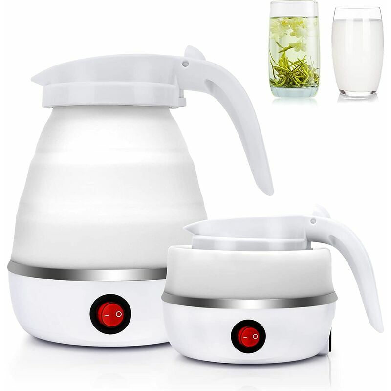 Materiale Premium - La bottiglia d'acqua pieghevole è realizzata in silicone alimentare sano, sicuro, inodore, non rivestito, non arrugginito, con elevata durezza, resistenza ai graffi, resistenza alla corrosione e resistenza alle alte temperature. Questa mini bottiglia d'acqua da viaggio pieghevole presenta una base in acciaio inossidabile 304 e un corpo in silicone resistente al calore con un'impugnatura ergonomica antiscottatura e antiscivolo. Il regalo perfetto per gli appassionati di viaggi all'aria aperta. 【Facile da usare e cottura rapida】Sistema di bollitore portatile con brocca traslucida e design in silicone fresco, comodo da usare. La pentola pieghevole è caratterizzata dal volume d'acqua minimo (0,25 l) e dal volume d'acqua massimo (0,6 l), che può evitare di aggiungere troppa o troppo poca acqua. Il bollitore portatile ha una potenza efficiente di 600 W e con un solo pulsante puoi riscaldare l'acqua in circa 4-6 minuti. 【Protezione contro il fuoco secco】Risparmia energia