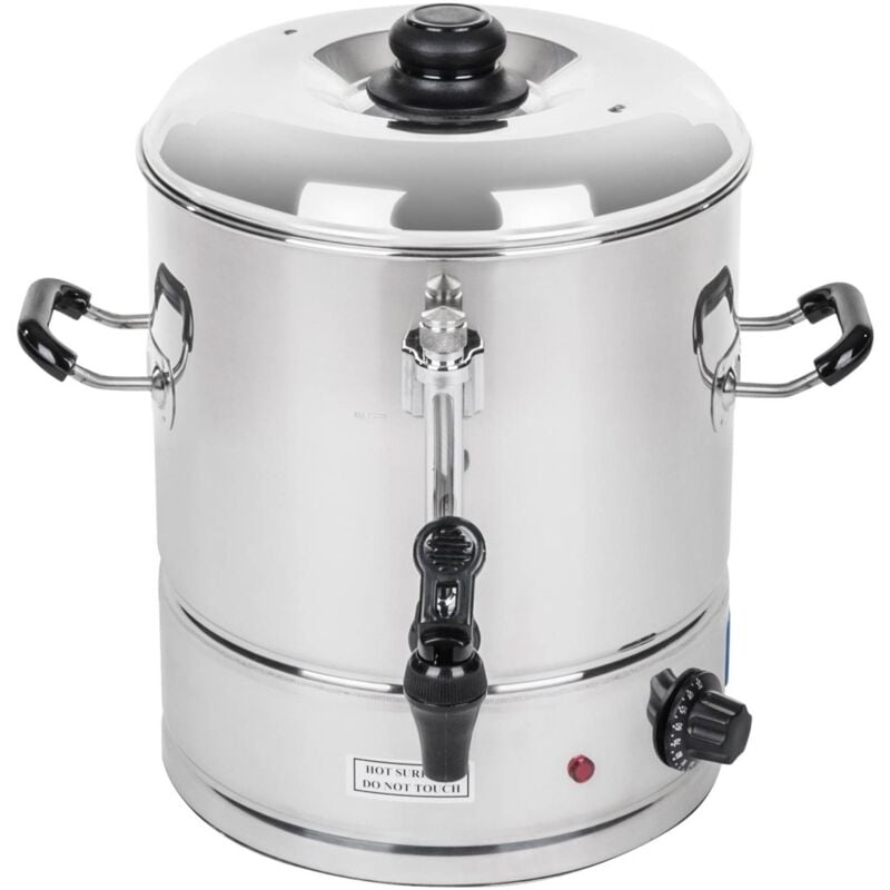 Bollitore Professionale - 30 Litri Il Bollitore RCWK 30L della Royal Catering è stato concepito per un utilizzo a livello professionale. Il bollitore è fatto di acciaio inox di alta qualità ed è per questa ragione protetto efficacemente dal rischio di corrosione, facile da pulire e in linea con i parametri igienici internazionali. Il Bollitore RCWK 30L è dotato naturalmente di un pratico indicatore di riempimento. In questo modo avete in ogni momento la possibilità di controllare la quantità d'acqua a disposizione all'interno dell'apparecchio. E potete reagire seduta stante prima che ai vostri clienti venga l'arsura. Il Bollitore RCWK 30L ha una capacità di 21 litri. Una cisterna così grande consente di fare circa 150 tazze con un carico solo. La potente resistenza da 3000 W superiore alla media del settore consente un riscaldamento rapido dell'acqua fino a una temperatura massima di 100 °C. Così non dovete perdere tempo prezioso in attesa che l'acqua raggiunga l'ebollizione. Grazie