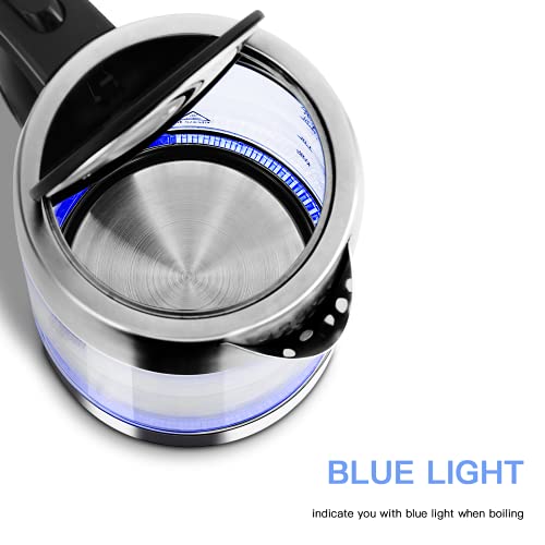 Bollitore in vetro, 1.7 l, 2200 W, con funzione di spegnimento automatico, funzione di riscaldamento rapido, bollitore in vetro, teiera con funzione di mantenimento in caldo, senza BPA