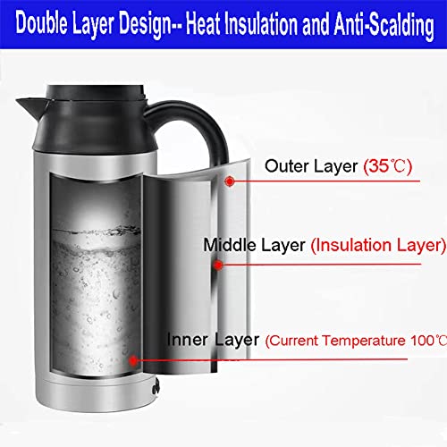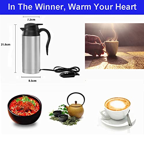 Bollitore da Viaggio, Bollitore Elettrico per Auto Portatile 12V da 750 ml in Acciaio Inox Bollitore con Sealed Auto Elastico Riscaldamento Cup per 12V Auto