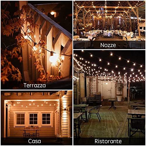 BOLONI Catena Luminosa Esterno, 30+6 G40 Lampadine Catena luminosa interno, 32.8FT/10M Catena Luminosa IP45 Impermeabile Stringa Vintage Luci per Giardino Terrazza Patio Natale Festa
