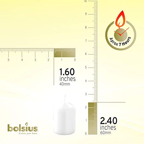 Bolsius - Candele a pilastro, Bianco, Pillar Candles, Tray 4, 60/40 mm