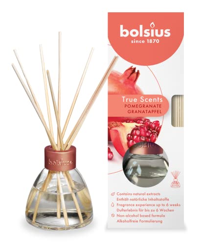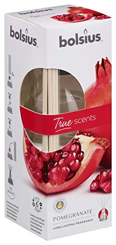 Bolsius Diffusore di Aromi 45 ml con 8 Bastoncini, 0% Alcol, Fragranza Melograno, True Scents