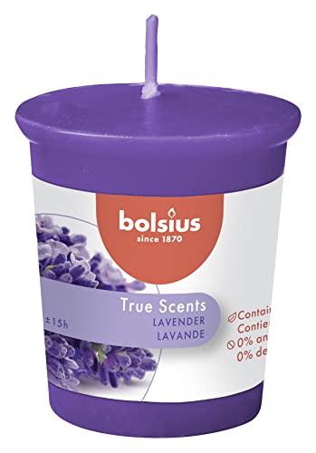 Bolsius True Scents - Mini candela profumata, lavanda, viola, 12 pezzi, lunghezza 15 ore, candele votive, con estratti naturali, cera naturale e vegana, senza olio di palma