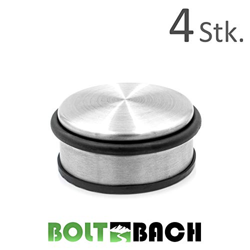 BOLTBACH Fermaporta in Acciaio Inox - Set di 4 Pezzi Extra Piatto & Alto Door Stopper - Door Stop con Anello di Gomma e Fondo gommato per la Massima Tenuta