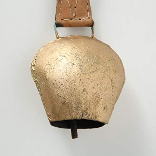 Boltze Campanaccio Mucca, campanaccio Capra, in Metallo, Effetto Oro Antico, con Cinghia Marrone, 1 Pezzo, Dimensioni circa9 cm x 6 cm x 25 cm