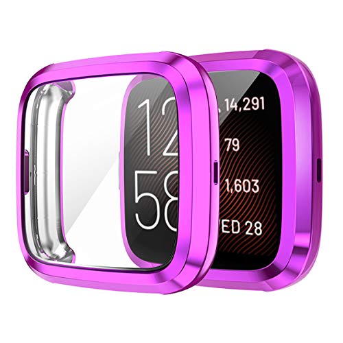 BoLuo 2 Pcs Screen Protector Cover per Fitbit Versa 2,Morbida Shell Plating PC Protector Frame Watch Copertura Resistente Custodia,Protettiva Watch Shell per Fitbit Versa 2/Versa2 SE (viola)