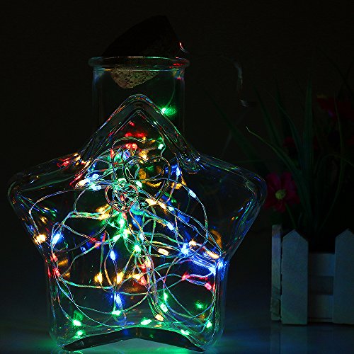 BOLWEO - Luci a batteria con telecomando, timer e dimmer, 5 m, 50 LED, luci in filo di rame, per interni ed esterni, casa, camera da letto, multicolore