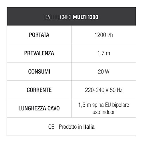 BOMBA SUMERG. MULTI 1300 1200l/h - H170cm- CABLE 1,5m