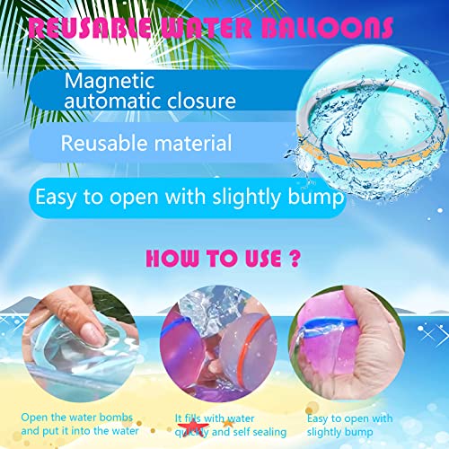 Bombe ad Acqua con Chiusura automatica,Riutilizzabili,Set di Bombe ad Acqua a Riempimento Rapido per un Secondo,Palloncini Colorati per L'estate All'aperto,Piscine e Spiagge (4 Pezzi)