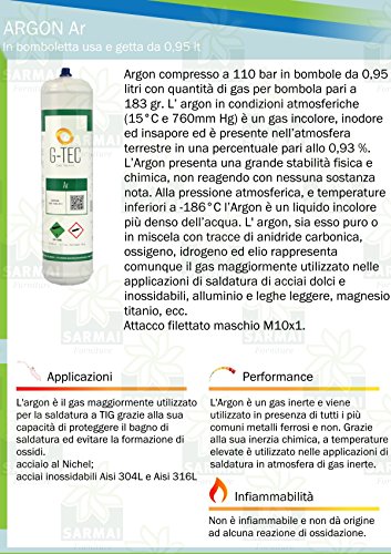 Bombola usa e getta monouso gas tecnico Argon Ar per saldatura TIG acciaio 0,95 lt