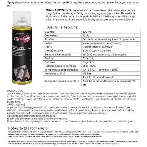 ✅ PRODOTTO CONFORME - prodotto "Made in Italy" sinonimo di altissima qualità della guaina che è conforme a tutte le normativi vigenti. Le bombolette non contengono gas dannosi per l'ozono e l'atmosfera. L'imballaggio metallico soddisfa tutti gli aspetti della sostenibilità assicurando una protezione totale dal contatto con ossigeno, gas, luce, umidità o altre contaminazioni econserva a lungo le caratteristiche del prodotto evitando così sprechi.