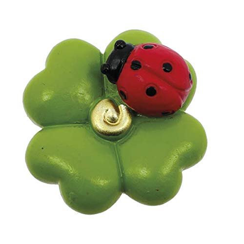 BOMBONIERA SET 12 PEZZI MAGNETE QUADRIFOGLIO VERDE CON COCCINELLA RESINA 3,5X3,5 CM