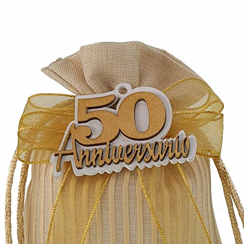 Kit Bomboniere Made in Italy 10 Pezzi Anniversario Cinquantesimo Set Completo con Decorazioni già confezionate sul Sacchetto Ovatta e bustine Trasparenti Alimentari