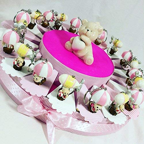 Bomboniere Nascita Battesimo Femmina o Maschio a seconda della Scelta (Torta Orsetti Mongolfiera e dirigibile Portachiavi) *