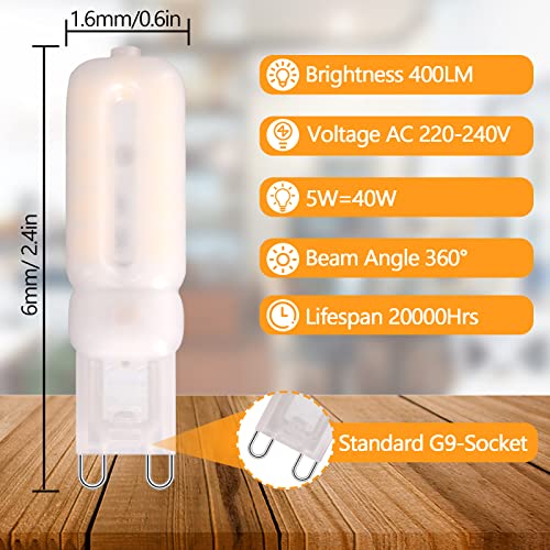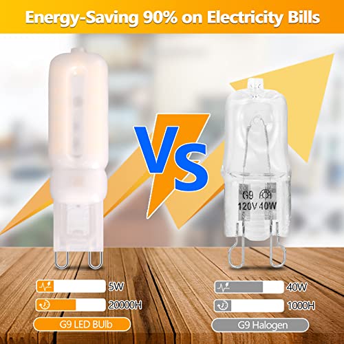 Lunga Durata: Il nostro LED G9 da 5w sostituisce le lampadine alogene da 40 W, risparmiando fino al 90% sulla bolletta elettrica, la durata è fino a 20.000 ore