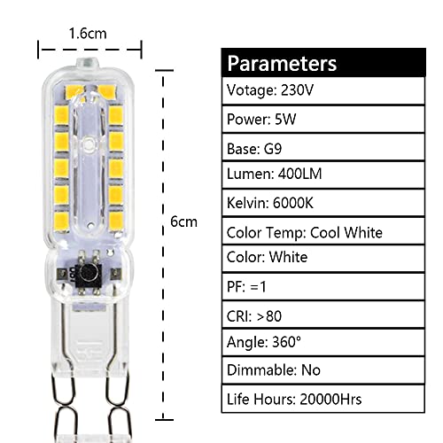 Lunga Durata: Il nostro LED G9 da 5w sostituisce le lampadine alogene da 40w, risparmiando fino al 90% sulla bolletta elettrica, la durata è fino a 20.000 ore