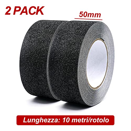BOMEI PACK Nastro Adesivo Antiscivolo, Nastro Antiscivolo, Nastro Adesivo di Sicurezza Forte per Interni ed Esterni, Confezione Da 2 50mmx10cm, Nero