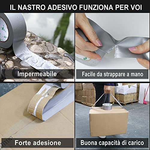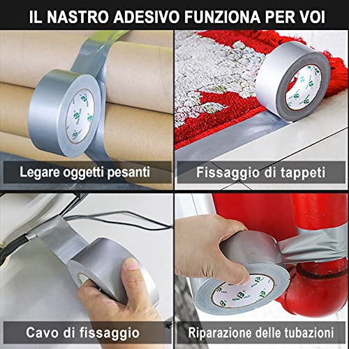 BOMEI PACK Nastro Adesivo Extra Forte Grigio, Super adesivo Nastro Telato, Duct tape 2 Rotoli 50mmx50m per Lavori di Riparazione, Fissaggio, Sigillatura