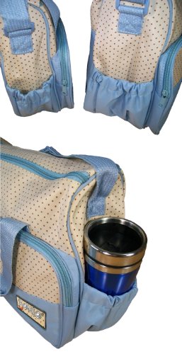 Comprende: grande e piccola borsa, borsa fasciatoio, scalda biberon, ciuccio.