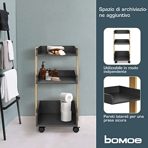 Bomoe Carrello moderno con 4 ruote bloccabili e 3 ripiani Bosse - Carrello da cucina in legno FSC® Carrello per servire Carrello artigianale Carrello laterale per cucina 32x35x69cm Antracite e rovere