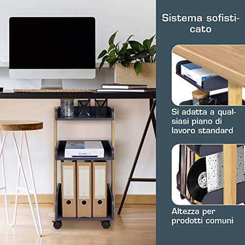 4x RUOTE A 360° CON FRENO DI FISSAGGIO: grazie alle pratiche ruote rotanti con freno di fissaggio, il nostro prodotto è ideale per lo stoccaggio. Il carrello può essere facilmente spinto da un luogo all'altro, offrendo un modo flessibile per organizzare e trasportare i vostri oggetti.