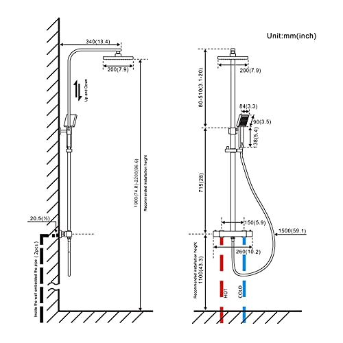 A proposito di soffione 20 cm x 20, doccetta 8 x 8 cm, asta doccia regolabile, circa 920 fino a 1350 mm