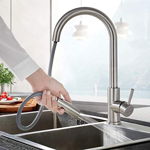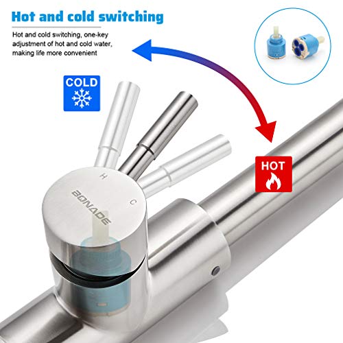 BONADE Rubinetto da cucina estraibile, girevole a 360°, miscelatore monocomando ad alta pressione, in acciaio inox, con 2 tipi di getto, in nichel spazzolato