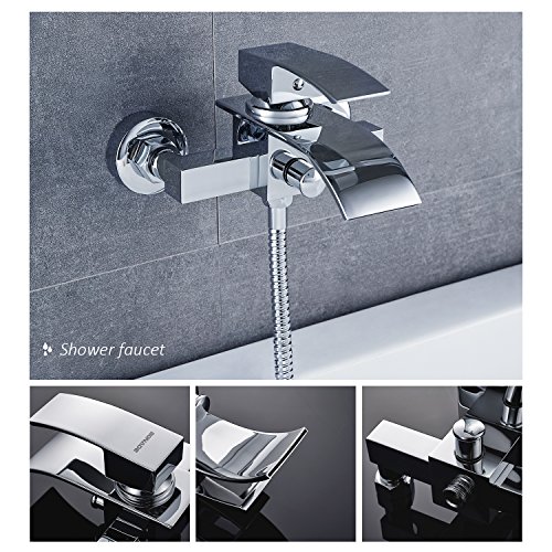 BONADE Rubinetto Vasca Bagno Set Doccia a cascata con Rubinetto Miscelatore Vasca Esterno, Cromo
